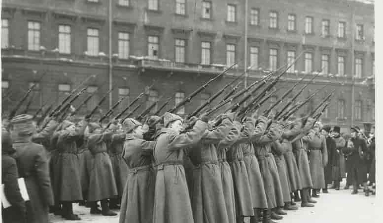 For sovjetstaten, som skulle eksportere revolusjonen til Europa, spesielt til et Tyskland på revolusjonens rand, utgjorde Polen den landbroen som Den røde armé måtte forsere for å bringe revolusjonen ut i verden. Foto av soldater fra Den røde armé i 1919, SNL