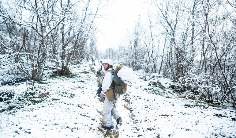 Ligger nøkkelen til forsvaret av Finnmark i HV’s kjentmannsapparat? Bildet viser innsatsstyrke Grebe fra HV som trener på ild og bevegelse på Terningmoen skytefelt. Foto: Mads Suhr Pettersen /Forsvaret NORSK MILITÆRT TIDSSKRIFT | SIDE 35