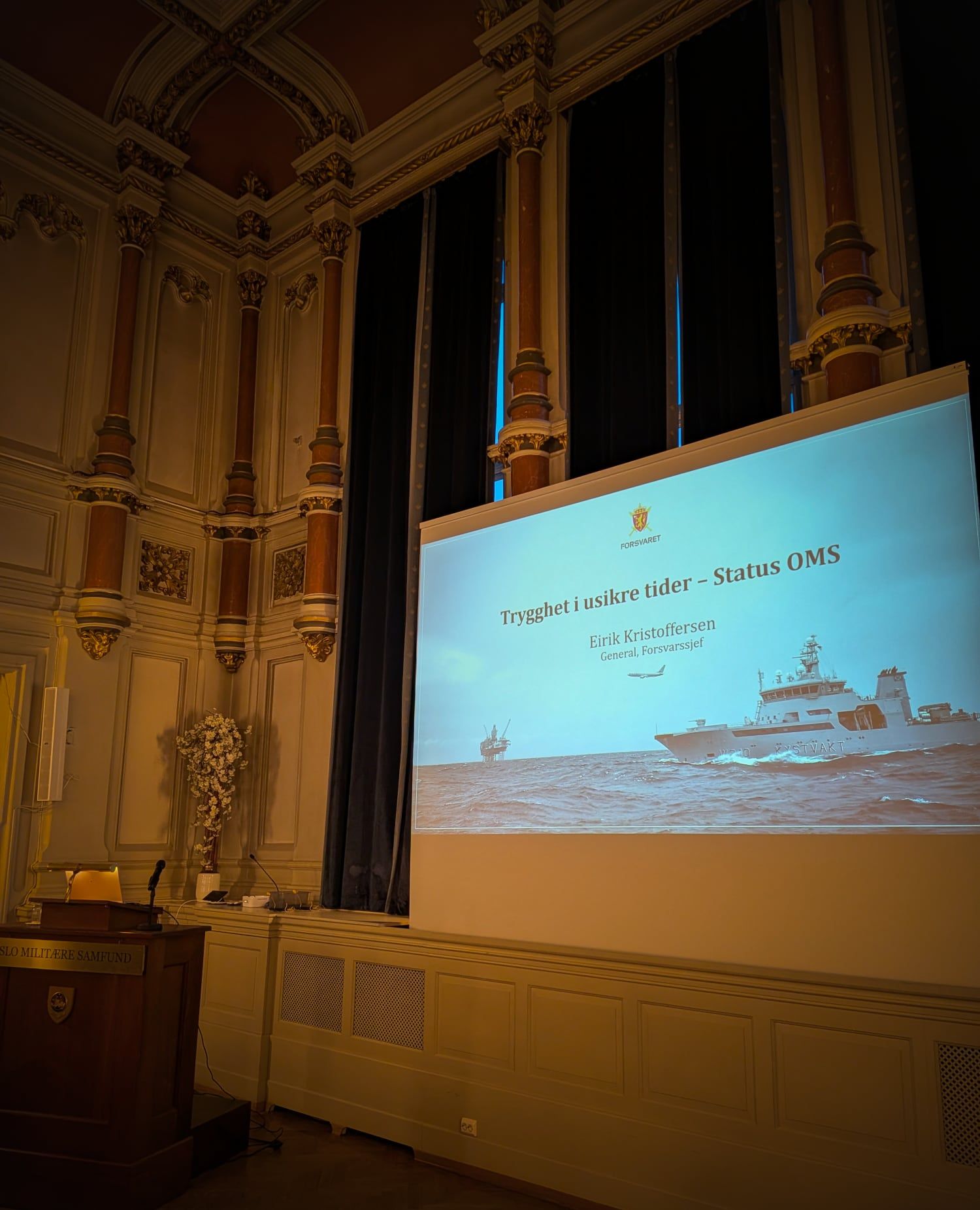 Forsvarssjef Eirik Kristoffersen åpnet sitt foredrag i Oslo Militære Samfund med en tydelig beskjed: Forsvaret leverer.