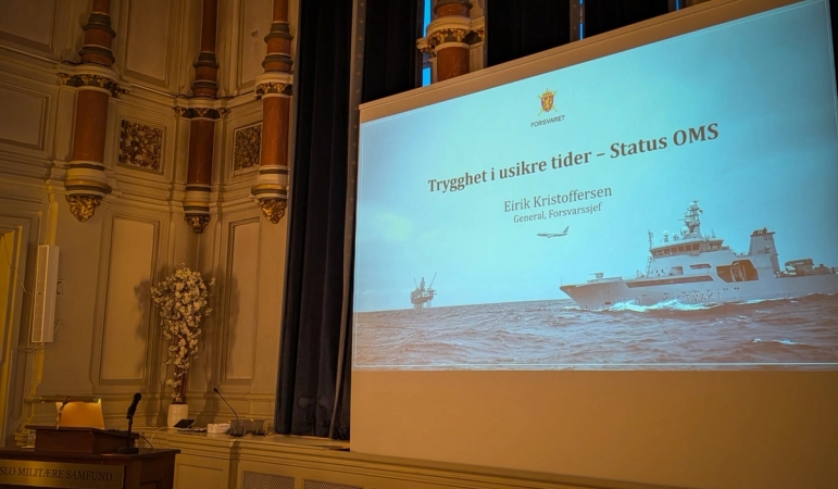 – Vi lever i en mer usikker og uforutsigbar verden, og oppdraget vårt er å skape trygghet i disse tidene. Med blikket rettet mot både globale uroligheter og nærområdene i nord, redegjorde general Eirik Kristoffersen for hvordan Forsvaret skal holde stø kurs gjennom 2026 og årene som kommer i Oslo Militære Samfund 19. januar 2026.