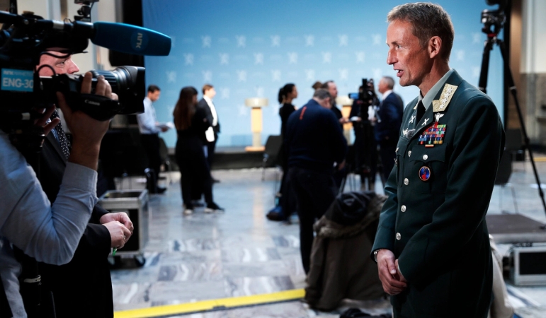 I oktober la regjeringen fram en revidert langtidsplan for Forsvaret. Bildet viser Forsvarssjef general Eirik Kristoffersen på pressekonferansen. Foto: Torbjørn Kjosvold/Forsvaret