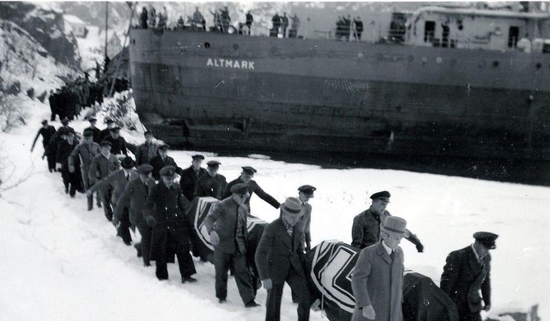 Altmark ble først oppdaget av Linesøy kystvaktstasjon på Fosen kl. 03:40 14. februar 1940. Graf Spee hadde senket ni britiske handelsskip og satt 303 fanger ombord i Altmark, men hadde selv beholdt 27 fangne offiserer. Etter press fra Uruguay ble disse satt fri, og de fortalte straks om fangene ombord på Altmark. Dette sto i Aftenposten 10. januar 1940, men helt uvirkelig ble det, så vidt det fremgår, ikke fanget opp i Marinen, unntatt av sjef 2. Sjøforsvarsdistrikt (Bergen), admiral Carsten Tank-Nielsen. Han sendte ut et rundskriv 11. januar; som åpenbart heller ikke ble lest!